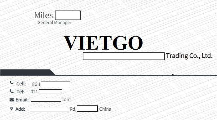 Chính vì vậy, liên hệ với VIETGO lần này, chúng tôi hy vọng sẽ được kết nối trực tiếp với những nhà cung cấp tiềm năng cho các mặt hàng trên để có thể đáp ứng số lượng nhập khẩu thường xuyên của chúng tôi tại thị trường Trung Quốc. Chúng tôi hy vọng sẽ sớm nhận được báo giá cũng như những tư vấn về mẫu mã, kích thước sản phẩm và phương thức thanh toán phù hợp từ phía nhà cung cấp để đơn hàng nhanh chóng được tiến hành một cách thuận lợi và thành công”.