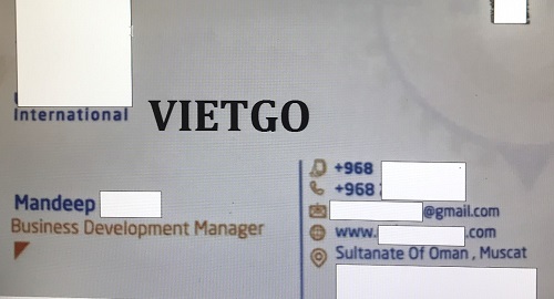 Hình ảnh danh thiếp của vị khách hàng (tại Oman)