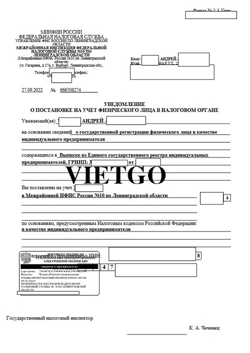 Hình ảnh đăng ký kinh doanh của vị khách hàng