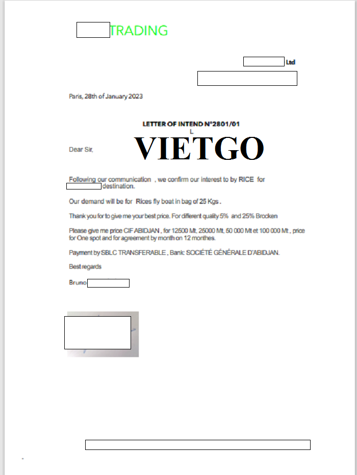 Qua quá trình trao đổi về đơn hàng, chúng tôi nhận thấy ông Julien là một vị khách hàng tiềm năng và vô cùng thân thiện khi ông bày tỏ niềm tin tưởng tuyệt đối vào quy trình làm việc của VIETGO. Ông hy vọng sẽ sớm nhận được báo giá từ phía nhà cung cấp để có thể thảo luận chi tiết hơn về đơn hàng lần này. Bên cạnh sản phẩm gạo, ông cũng có nhu cầu nhập khẩu cà phê để phục vụ cho hoạt động kinh doanh của công ty tại thị trường Philippines và Pháp.