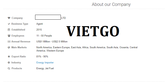 “██████████ LTD được thành lập năm 2015 và là một công ty tìm nguồn cung ứng và kinh doanh các sản phẩm nông nghiệp. Khách hàng hoàn toàn có thể liên hệ với chúng tôi nếu bạn cần bất kỳ sản phẩm nào từ Châu Phi từ nông sản, khoáng sản và những thứ khác. Chúng tôi luôn luôn tìm nguồn cung ứng từ các nhà sản xuất đáng tin cậy từ khắp nới trên thế giới để làm hài lòng khách hàng của mình sau khi xem xét nghiêm ngặt các điều khoản thanh toán liên quan. Ngoài ra, ██████████ cũng giúp các nhà sản xuất ngoài châu Phi muốn thâm nhập thị trường châu Phi để giành được thị phần.