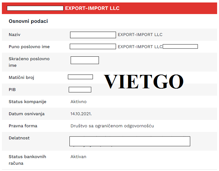 Vừa qua, anh ██████████ Hoàn – vị khách hàng người Việt Nam, hiện nay đang sinh sống và làm việc tại Serbia đã liên hệ với VIETGO bày tỏ mong muốn nhập khẩu sản phẩm gỗ dán phủ phim với số lượng lớn sang thị trường Slovenia và Montenegro. Vị khách hàng đang giữ vai trò là người đại diện pháp lý của công ty ██████████ Export - Import LLC ██████████ tại Serbia.