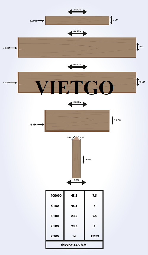 Gỗ sấy khô, bào bốn mặt, chấp nhận mắt gỗ, tuy nhiên hạn chế vết nứt