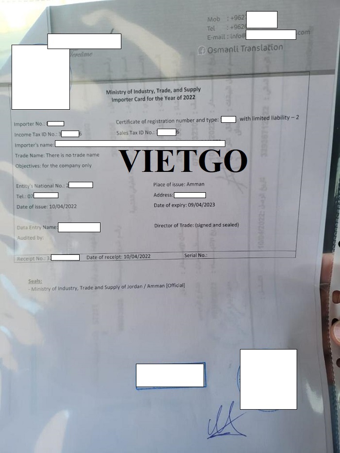 Hình ảnh chứng nhận nhà nhập khẩu của công ty vị khách hàng năm 2022