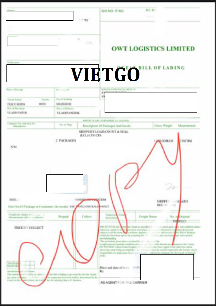 Hình ảnh vận đơn đường biển nhập khẩu cà phê từ Trung Quốc tới Nga của công ty vị khách hàng