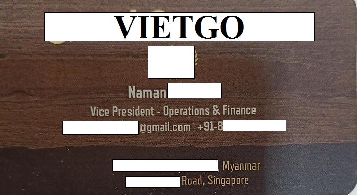 VIETGO vừa có cuộc trò chuyện với vị khách hàng đến từ Ấn Độ, ông Naman. Ông hiện giữ chức vụ Phó chủ tịch tại ██████████ PTE. LTD. Công ty hiện có hai chi nhánh văn phòng, một ở thị trấn ██████████, Myanmar và một ở đường ██████████, Singapore. ██████████ được thành lập vào ngày 7 tháng 8 năm 2015 với lĩnh vực kinh doanh chủ yếu trong ngành nông nghiệp, lâm nghiệp, đánh bắt và săn bắn. Vị khách hàng cho biết công ty ông là một doanh nghiệp đầu tư, hiện đang tập trung vào thị trường Myanmar cho ngành lâm nghiệp với mô hình trồng keo.