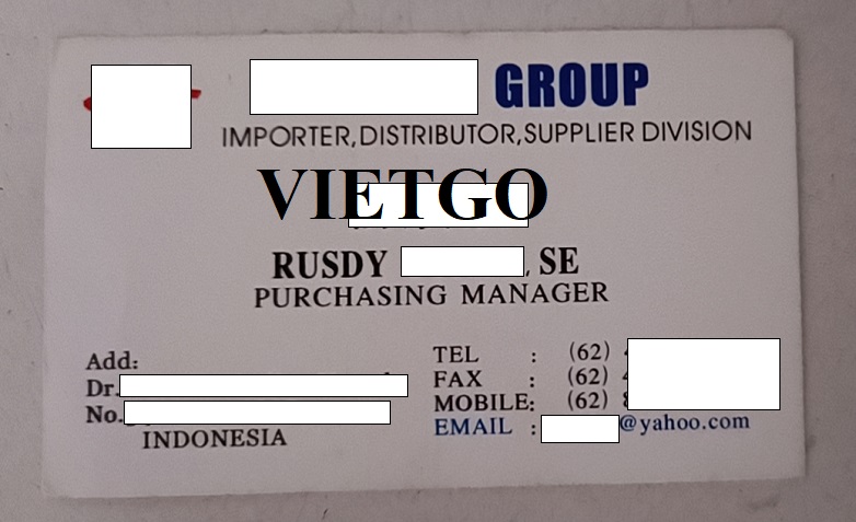 Ông Rusdy, đại diện cho công ty ██████████ Group, đã liên hệ với VIETGO để tìm kiếm nhà cung cấp cho đơn hàng tỏi trắng nhằm phục vụ cho nhu cầu kinh doanh tại thị trường trong nước.