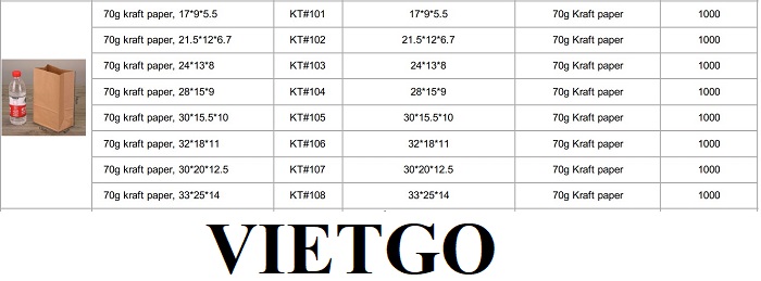 Tất cả các lô hàng từ các nhà máy của chúng tôi đều trải qua quá trình kiểm tra chất lượng để đảm bảo rằng tất cả các sản phẩm và tiêu chuẩn chất lượng đều đúng như hợp đồng và thỏa thuận. Với dự án kinh doanh sắp tới, tôi đang có nhu cầu nhập khẩu mặt hàng túi giấy với số lượng lớn. Vì vậy, chúng tôi đã liên hệ với Quý công ty VIETGO với mong muốn công ty sẽ giúp chúng tôi kết nối thành công với nhà cung cấp đáng tin cậy tại Châu Á”.